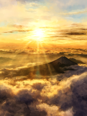 Free AI illustrations: Sunrise Glory - Watercolor Mt. Fuji Art to Brighten Your World!新着!!