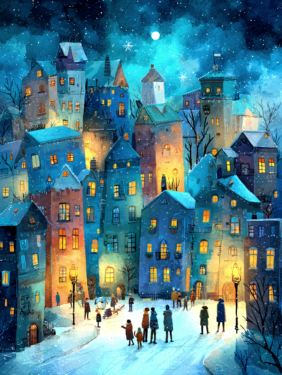 Step into a world of soft snow and glowing lights. This watercolor painting captures the "blue hour" in Bergen […]