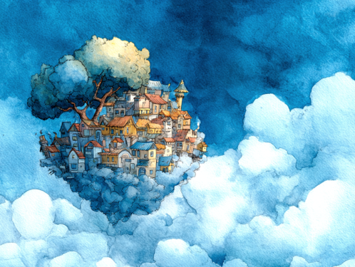 Free AI illustrations: The Island Above the Clouds - A Piece of Magic for You新着!!
