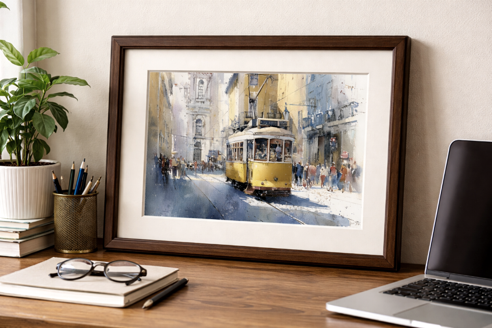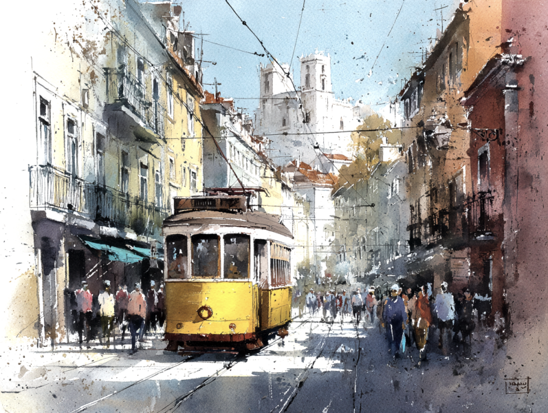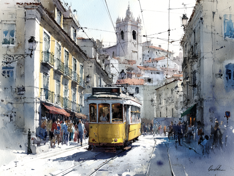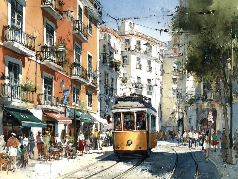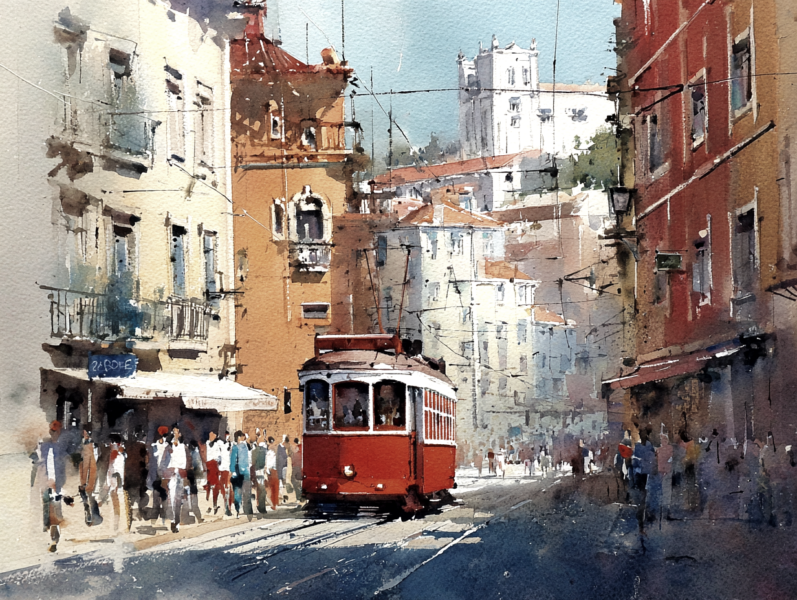 Hi! Do you love the feeling of old European streets and vintage travel? Today, I have a special gift for you: a beautiful watercolor painting of a classic Number 8 tram in Lisbon, Portugal.