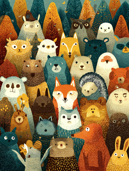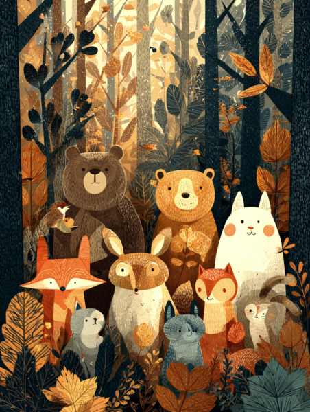 Free AI illustrations: Fantastic art pieces featuring forest animals!
