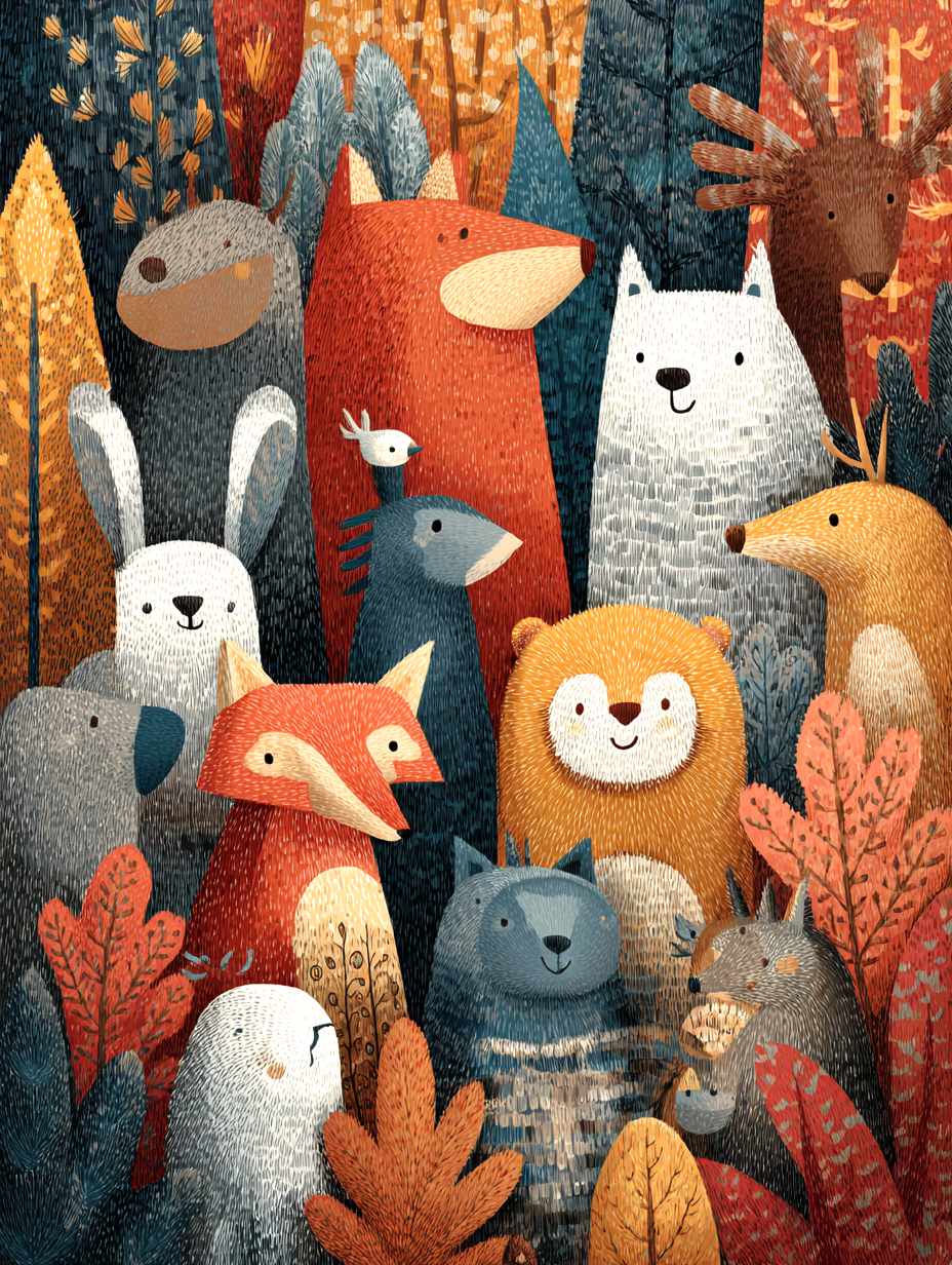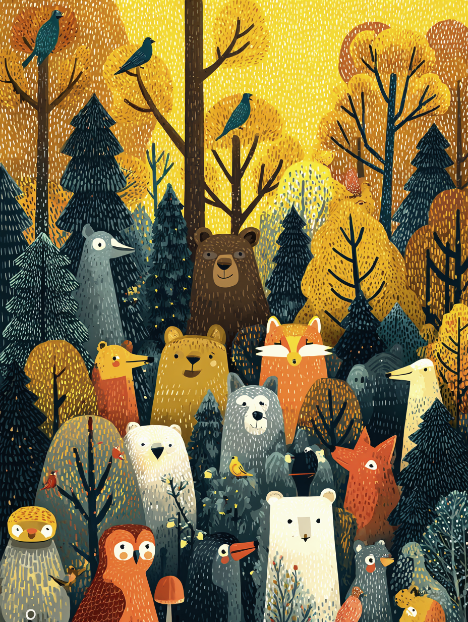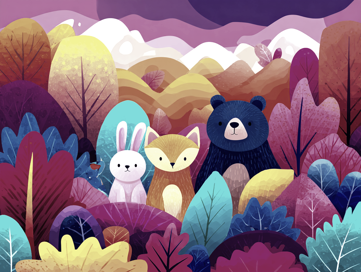 Free AI illustrations: Fantastic art pieces featuring forest animals!