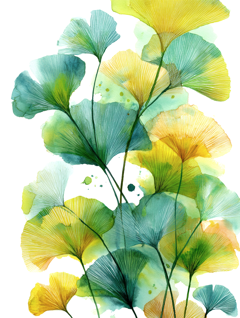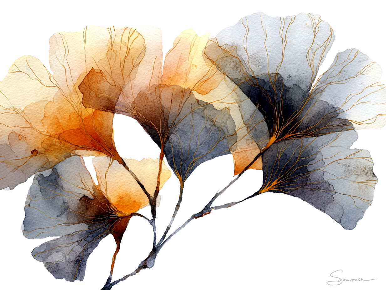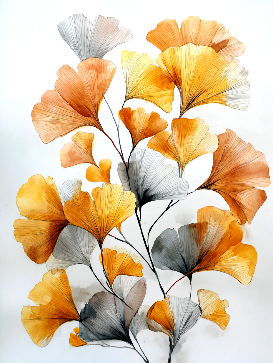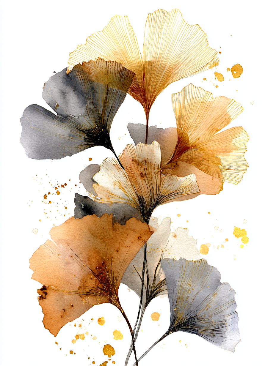 Did you know that Ginkgo leaves are often seen as a symbol of hope, peace, and long life? I wanted to capture that positive energy in this painting. The gold accents represent the "light" that stays with us even as seasons change.