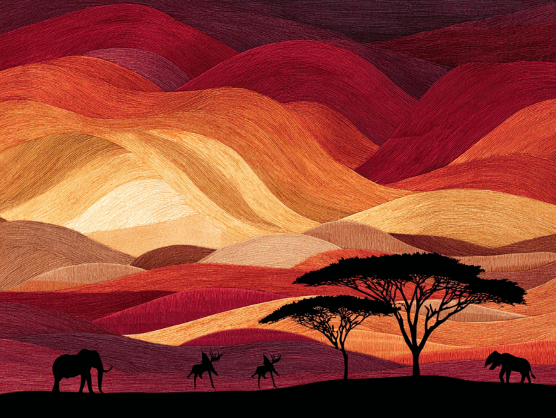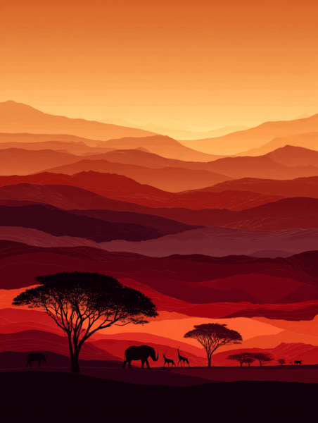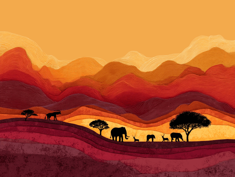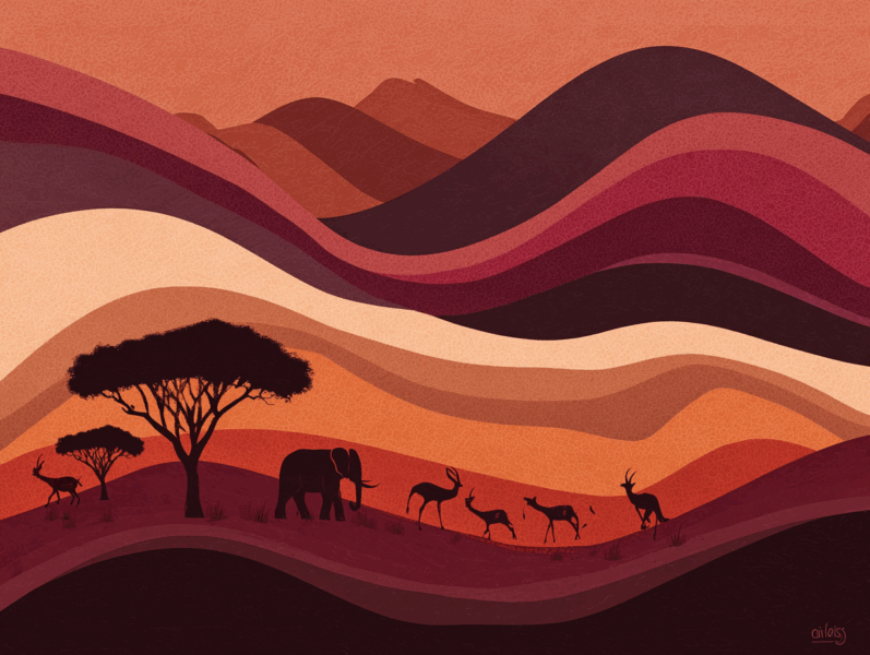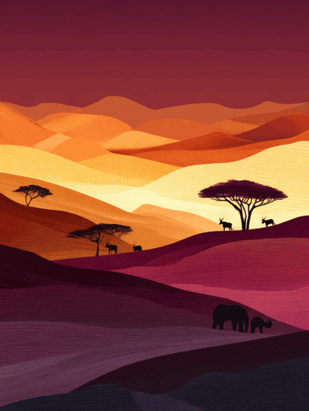 The beautiful gradation of orange colors and the quiet shadows of the wild animals create a perfect contrast. It is like a piece of art painted by the Earth itself.