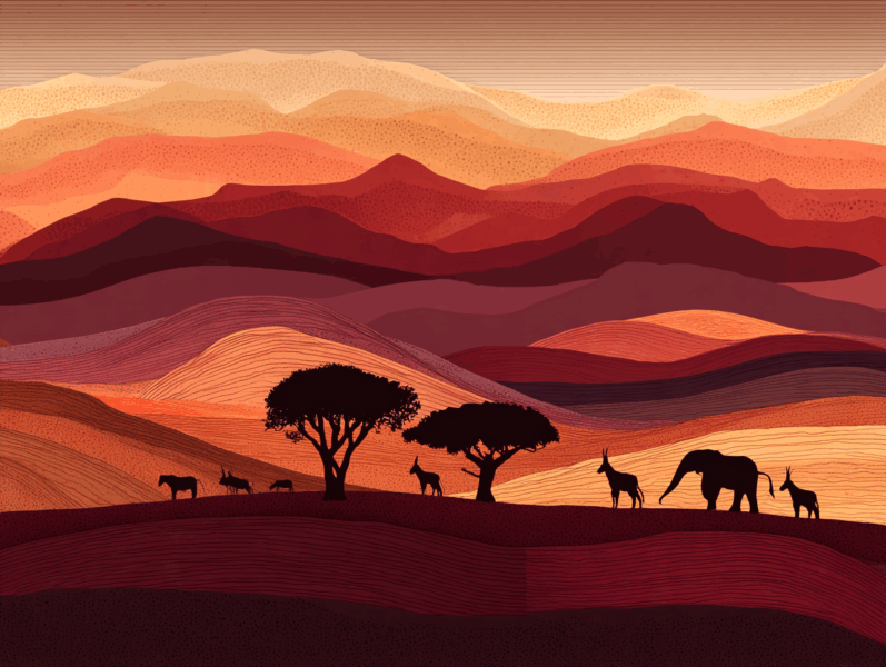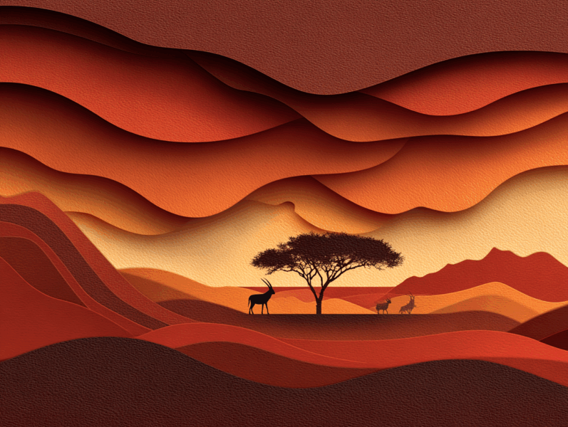 Free AI illustrations : Wildlife and color palettes in the Namibia desert