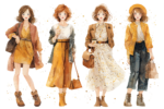 Free AI illustrations: Watercolor Art of Tokyo Girls Street Fashion新着!!